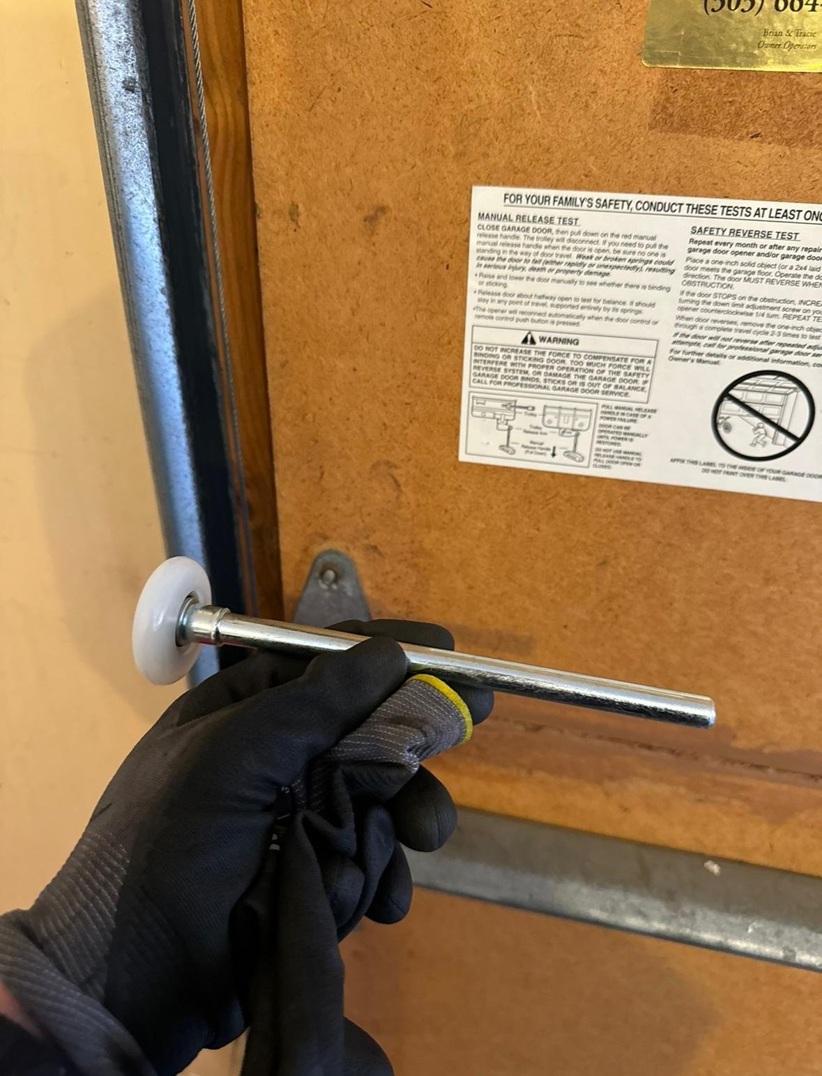 If the door feels heavy, won’t open, or you hear a loud snap, your spring is likely broken. Avoid using it until we inspect it.